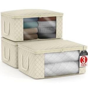 Foldable Storage Box, 2 Pack Clothes Storage Boxes With Double Opening Zip And Clear Window, Sided Zip Top Lid, With Reinforced Handle for Storing Bedding, Blankets (D – 2 pack)