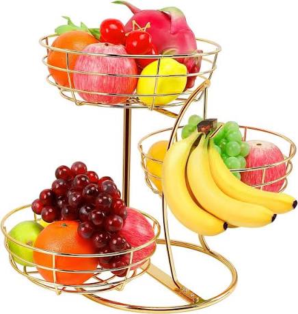 Thicken Fruit Bowl Basket with Banana Hanger – Durable Detachable Kitchen Countertop Organizer for Fruits, Vegetables, Snacks, Metal Wire Countertop Storage Basket for Kitchen (