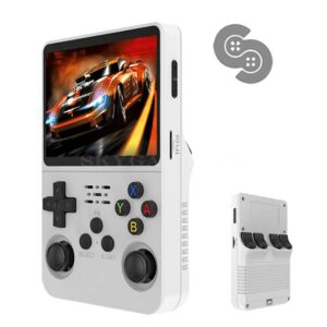 R36S Retro Handheld Games Console, 20,000+ Classic Games Portable Pocket Video Player with 3.5 Inch HD Screen, 64G TF Card, Open Source Linux System Screen for Teens and Adults (Purple 64G)
