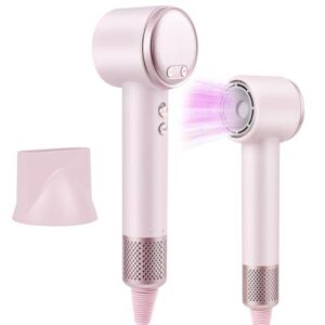 Hair Dryer 200 Million Negative Ionic Hairdryer,3 Speed 4 Heat Setting,110, 000 RPM High Speed Brushless Motor Blow Dryer,with Magnetic Nozzle,51dB Low Noise Travel Hairdryers for Women and Men (Pink)
