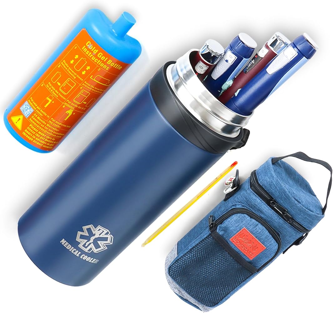 Insulin Cooler Travel Case – 48 Hours Large Medicine Cooler Bag for 3-7 Pens, with Thermometer & Gel Ice Pack, TSA Approved Diabetic Travel Case