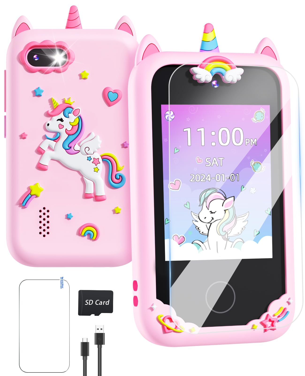 Kids Camera, Gifts for Girls 3-7 Years Old, 2.0-inch Flip Phone Digital Camera with 32GB SD Card, DIY Stickers, 1080P Video, Games, Music Player, Christmas Birthday Toys Presents for Girls (Pink)