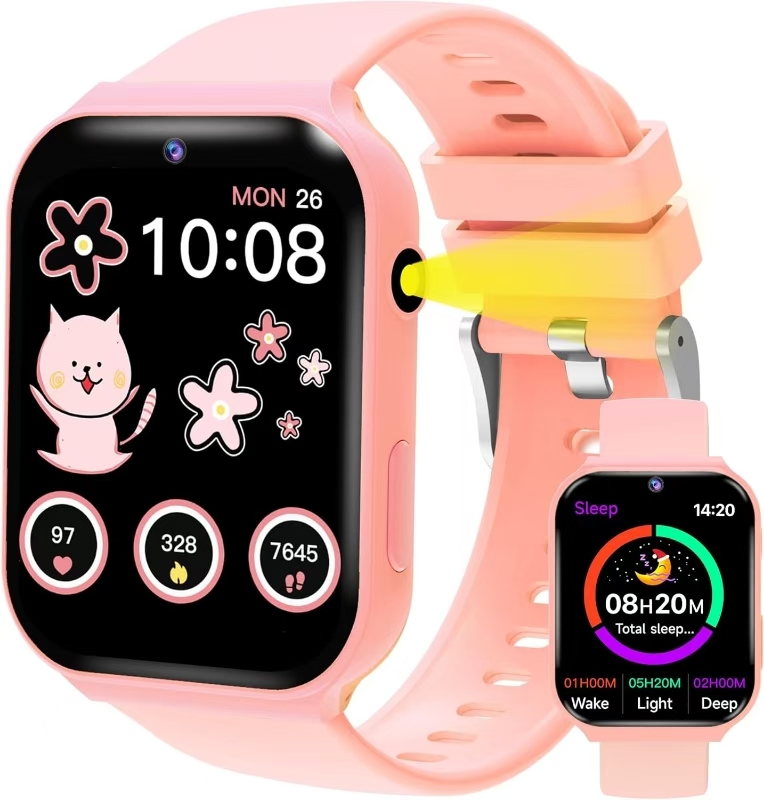 Kids Smart Watch with 18 Educational Games, Sleep Tracker & Camera – 1.83 Inch Touch Screen Fitness Tracker with Pedometer, Alarm, Flashlight for Boys and Girls