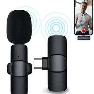 Wireless Lavalier Microphone for iPhone – Android Computer, Mini Microphone with Windscreens & Pop Filters for Live Streaming, Video Recording, Interviews, YouTube, TikTok, Vlog